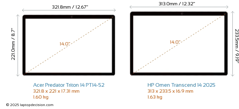 HDMIBoth Predator Triton 14 PT14-52 and Omen Transcend 14 2025 feature an HDMI port (1x HDMI 2.1) for connecting to external monitors.