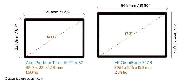 HDMIBoth Predator Triton 14 PT14-52 and OmniBook 7 17.3 feature an HDMI port (1x HDMI 2.1) for connecting to external monitors.