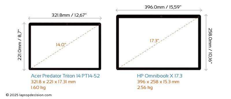 ThunderboltBoth Predator Triton 14 PT14-52 and Omnibook X 17.3 are equipped with Thunderbolt 4 ports.