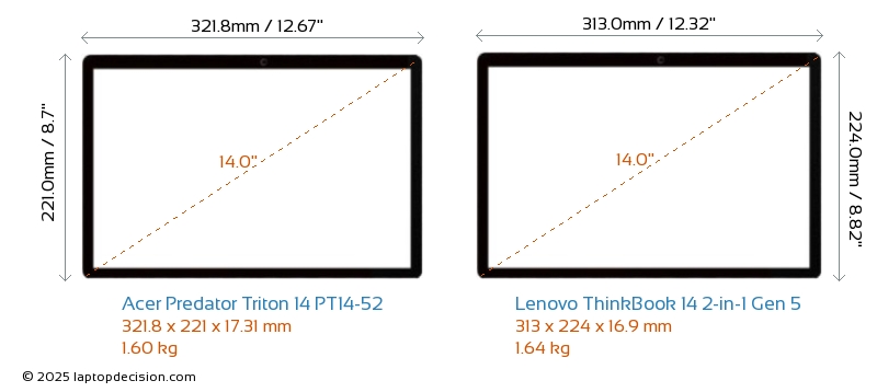 ThunderboltBoth Predator Triton 14 PT14-52 and ThinkBook 14 2-in-1 Gen 5 are equipped with Thunderbolt 4 ports.