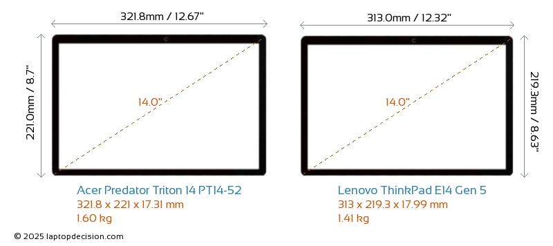 HDMIBoth Predator Triton 14 PT14-52 and ThinkPad E14 Gen 5 feature an HDMI port (1x HDMI 2.1) for connecting to external monitors.