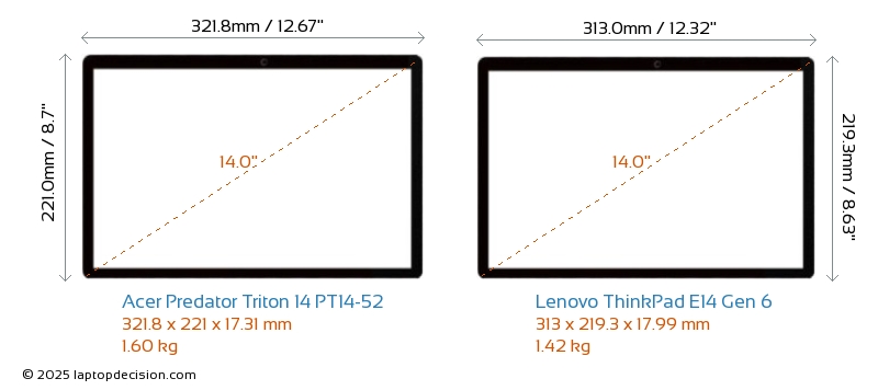 ThunderboltBoth Predator Triton 14 PT14-52 and ThinkPad E14 Gen 6 are equipped with Thunderbolt 4 ports.