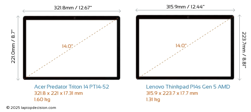 ThunderboltBoth Predator Triton 14 PT14-52 and Thinkpad P14s Gen 5 AMD are equipped with Thunderbolt 4 ports.