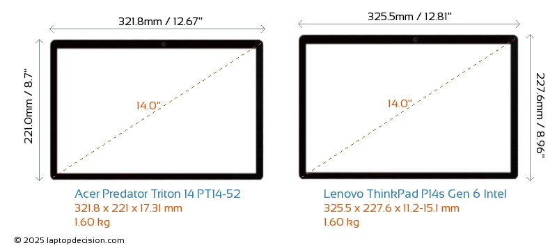 ThunderboltBoth Predator Triton 14 PT14-52 and ThinkPad P14s Gen 6 Intel are equipped with Thunderbolt 4 ports.