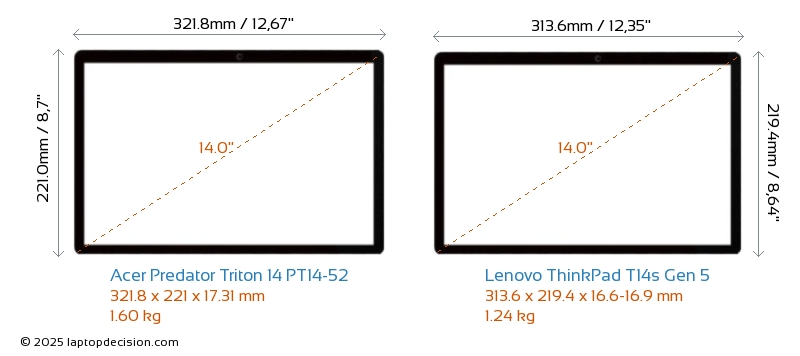 ThunderboltBoth Predator Triton 14 PT14-52 and ThinkPad T14s Gen 5 are equipped with Thunderbolt 4 ports.