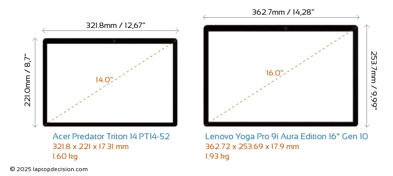 HDMIBoth Predator Triton 14 PT14-52 and Yoga Pro 9i Aura Edition 16" Gen 10 feature an HDMI port (1x HDMI 2.1) for connecting to external monitors.