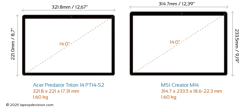 HDMIBoth Predator Triton 14 PT14-52 and Creator M14 feature an HDMI port (1x HDMI 2.1) for connecting to external monitors.