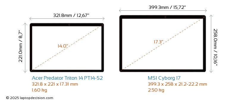 HDMIBoth Predator Triton 14 PT14-52 and Cyborg 17 feature an HDMI port (1x HDMI 2.1) for connecting to external monitors.