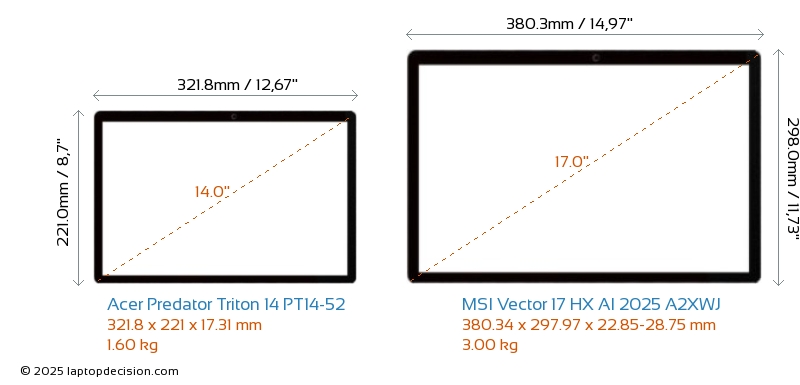 HDMIBoth Predator Triton 14 PT14-52 and Vector 17 HX AI 2025 A2XWJ feature an HDMI port (1x HDMI 2.1) for connecting to external monitors.