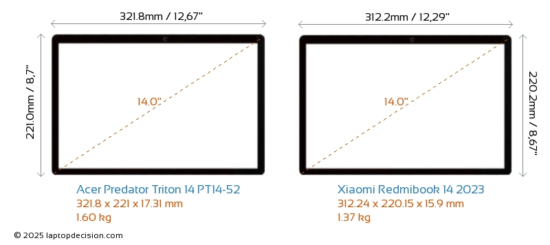 HDMIBoth Predator Triton 14 PT14-52 and Redmibook 14 2023 feature an HDMI port (1x HDMI 2.1) for connecting to external monitors.