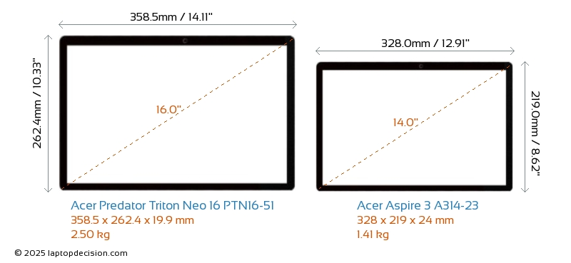 HDMIBoth Predator Triton Neo 16 PTN16-51 and Aspire 3 A314-23 feature an HDMI port (1x HDMI 2.1) for connecting to external monitors.