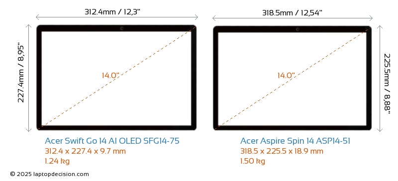 USBBoth Swift Go 14 AI OLED SFG14-75 and Aspire Spin 14 ASP14-51 feature 2x USB 3.2 USB-A ports.Both Swift Go 14 AI OLED SFG14-75 and Aspire Spin 14 ASP14-51 feature 2x USB 4.0 USB Type-C ports.