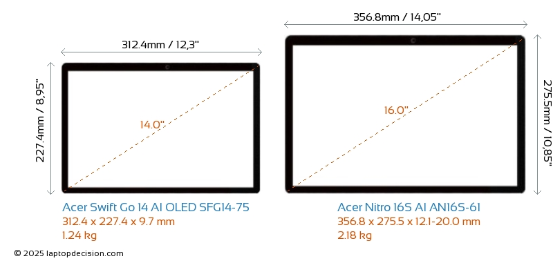 HDMIBoth Swift Go 14 AI OLED SFG14-75 and Nitro 16S AI AN16S-61 feature an HDMI port (1x HDMI 2.1) for connecting to external monitors.