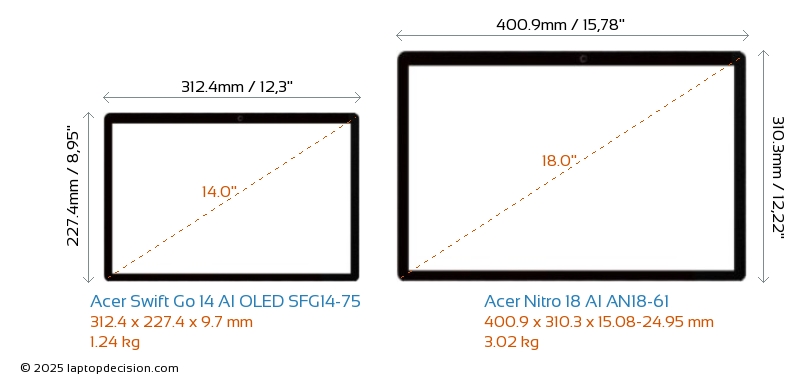 HDMIBoth Swift Go 14 AI OLED SFG14-75 and Nitro 18 AI AN18-61 feature an HDMI port (1x HDMI 2.1) for connecting to external monitors.