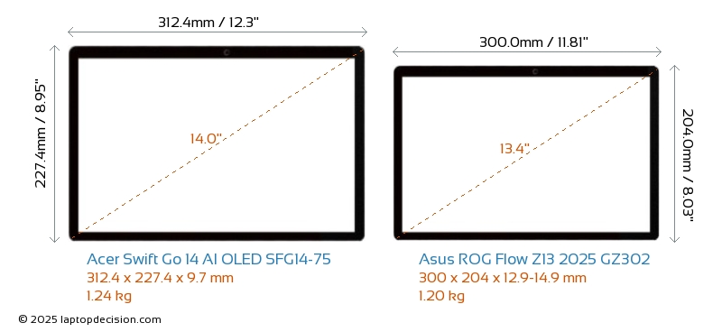 ThunderboltNeither Swift Go 14 AI OLED SFG14-75 nor ROG Flow Z13 2025 GZ302 has Thunderbolt port.