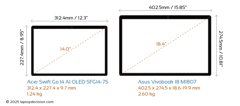 HDMIBoth Swift Go 14 AI OLED SFG14-75 and Vivobook 18 M1807 feature an HDMI port (1x HDMI 2.1) for connecting to external monitors.