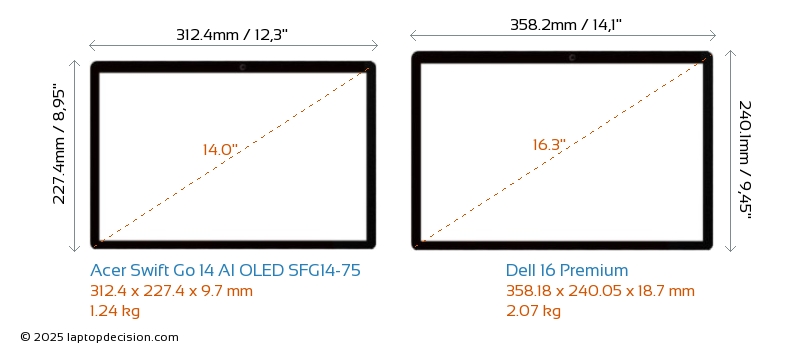HDMI Swift Go 14 AI OLED SFG14-75 features an HDMI port (1x HDMI 2.1) for connecting to external monitors. 16 Premium does not have an HDMI port.