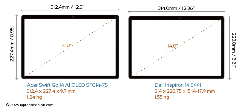HDMI Swift Go 14 AI OLED SFG14-75 features an HDMI port (1x HDMI 2.1) for connecting to external monitors. Inspiron 14 5441 does not have an HDMI port.