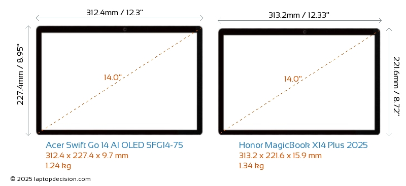USBBoth Swift Go 14 AI OLED SFG14-75 and MagicBook X14 Plus 2025 feature 2x USB 3.2 USB-A ports.Both Swift Go 14 AI OLED SFG14-75 and MagicBook X14 Plus 2025 feature 2x USB 4.0 USB Type-C ports.