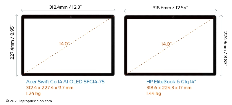 USBBoth Swift Go 14 AI OLED SFG14-75 and EliteBook 6 G1q 14" feature 2x USB 3.2 USB-A ports.Both Swift Go 14 AI OLED SFG14-75 and EliteBook 6 G1q 14" feature 2x USB 4.0 USB Type-C ports.
