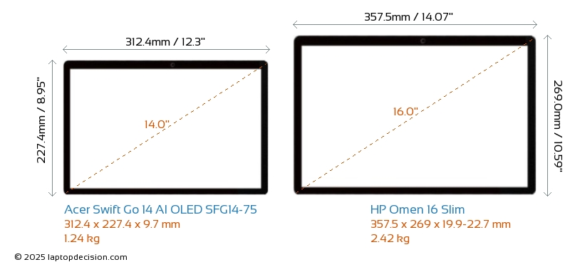 HDMIBoth Swift Go 14 AI OLED SFG14-75 and Omen 16 Slim feature an HDMI port (1x HDMI 2.1) for connecting to external monitors.
