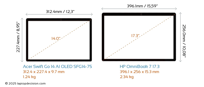 HDMIBoth Swift Go 14 AI OLED SFG14-75 and OmniBook 7 17.3 feature an HDMI port (1x HDMI 2.1) for connecting to external monitors.