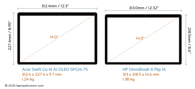 USBBoth Swift Go 14 AI OLED SFG14-75 and OmniBook X Flip 14 feature 2x USB 3.2 USB-A ports.Both Swift Go 14 AI OLED SFG14-75 and OmniBook X Flip 14 feature 2x USB 4.0 USB Type-C ports.