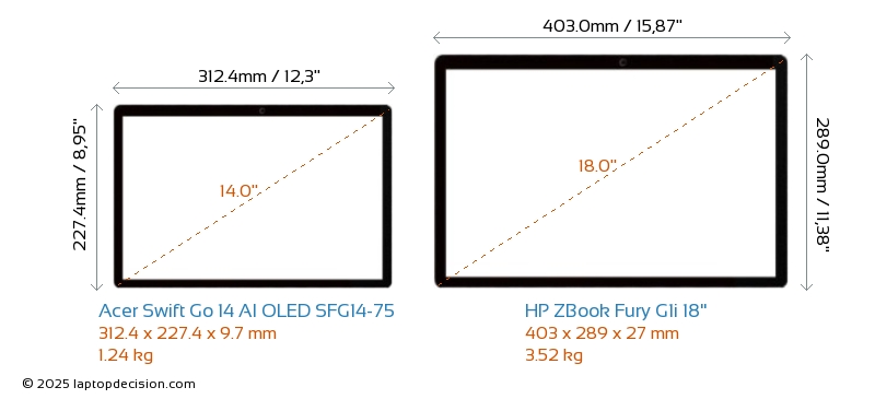 USBBoth Swift Go 14 AI OLED SFG14-75 and ZBook Fury G1i 18" have USB-A ports. Swift Go 14 AI OLED SFG14-75 has 2x USB 3.2 USB-A ports, while ZBook Fury G1i 18" has 1x USB 3.2 USB-A ports.Both Swift Go 14 AI OLED SFG14-75 and ZBook Fury G1i 18" have USB Type-C ports. Swift Go 14 AI OLED SFG14-75 has 2x USB 4.0 USB Type-C ports, while ZBook Fury G1i 18" has 3x USB 4.0 USB Type-C ports.