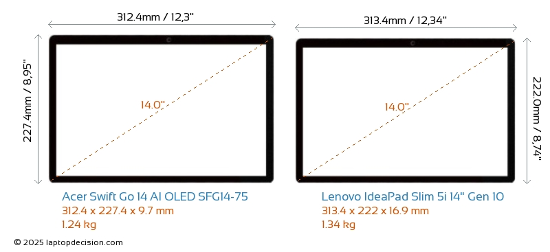 USBBoth Swift Go 14 AI OLED SFG14-75 and IdeaPad Slim 5i 14" Gen 10 feature 2x USB 3.2 USB-A ports.Both Swift Go 14 AI OLED SFG14-75 and IdeaPad Slim 5i 14" Gen 10 have USB Type-C ports. Swift Go 14 AI OLED SFG14-75 has 2x USB 4.0 USB Type-C ports, while IdeaPad Slim 5i 14" Gen 10 has 2x USB 3.2 USB Type-C ports.