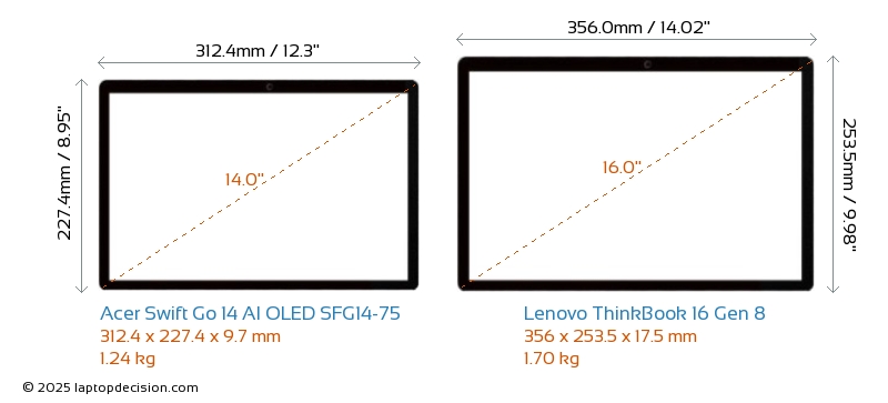 HDMIBoth Swift Go 14 AI OLED SFG14-75 and ThinkBook 16 Gen 8 feature an HDMI port (1x HDMI 2.1) for connecting to external monitors.