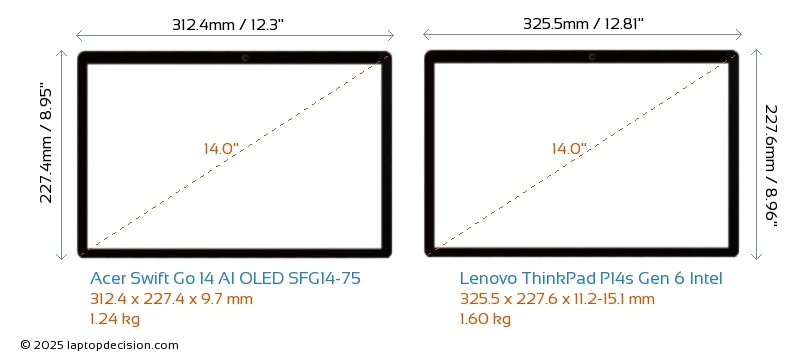 USBBoth Swift Go 14 AI OLED SFG14-75 and ThinkPad P14s Gen 6 Intel feature 2x USB 3.2 USB-A ports.Both Swift Go 14 AI OLED SFG14-75 and ThinkPad P14s Gen 6 Intel feature 2x USB 4.0 USB Type-C ports.