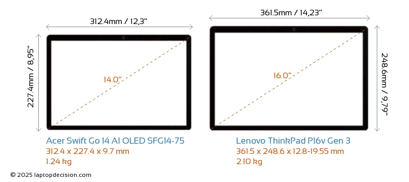 USBBoth Swift Go 14 AI OLED SFG14-75 and ThinkPad P16v Gen 3 feature 2x USB 3.2 USB-A ports.Both Swift Go 14 AI OLED SFG14-75 and ThinkPad P16v Gen 3 feature 2x USB 4.0 USB Type-C ports.