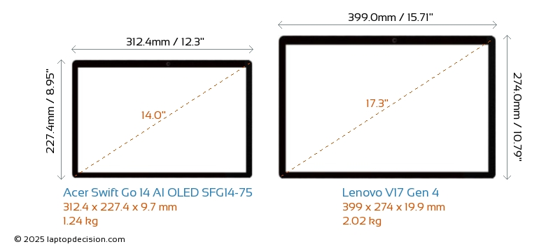 USBBoth Swift Go 14 AI OLED SFG14-75 and V17 Gen 4 feature 2x USB 3.2 USB-A ports.Both Swift Go 14 AI OLED SFG14-75 and V17 Gen 4 have USB Type-C ports. Swift Go 14 AI OLED SFG14-75 has 2x USB 4.0 USB Type-C ports, while V17 Gen 4 has 1x USB 3.2 USB Type-C ports.