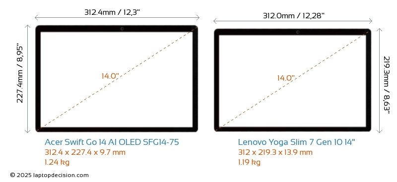 HDMIBoth Swift Go 14 AI OLED SFG14-75 and Yoga Slim 7 Gen 10 14" feature an HDMI port (1x HDMI 2.1) for connecting to external monitors.