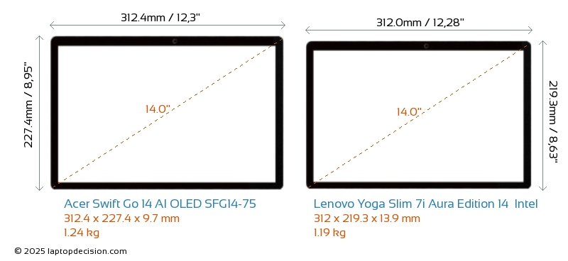 HDMIBoth Swift Go 14 AI OLED SFG14-75 and Yoga Slim 7i Aura Edition 14 Intel feature an HDMI port (1x HDMI 2.1) for connecting to external monitors.