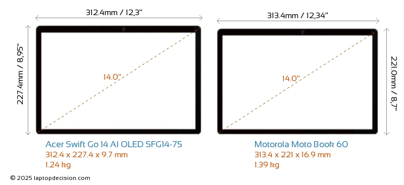 USBBoth Swift Go 14 AI OLED SFG14-75 and Moto Book 60 feature 2x USB 3.2 USB-A ports.Both Swift Go 14 AI OLED SFG14-75 and Moto Book 60 feature 2x USB 4.0 USB Type-C ports.