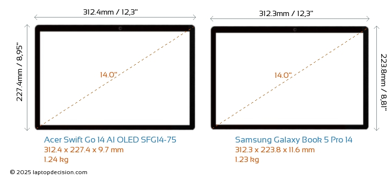 HDMIBoth Swift Go 14 AI OLED SFG14-75 and Galaxy Book 5 Pro 14 feature an HDMI port (1x HDMI 2.1) for connecting to external monitors.