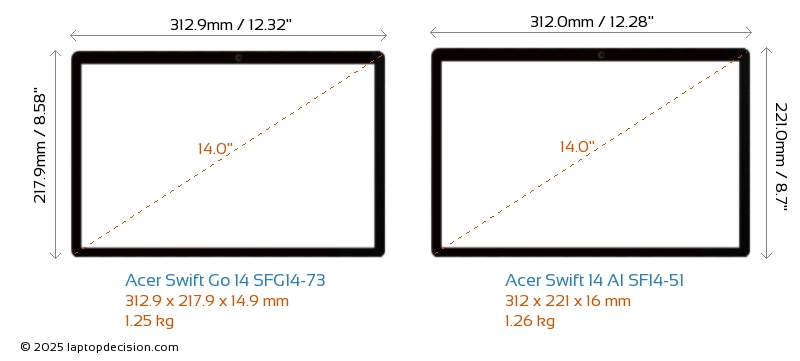 SD Card Reader Swift Go 14 SFG14-73 is equipped with an SD Card Reader for easy access to memory cards. Swift 14 AI SF14-51 does not have an SD Card Reader.