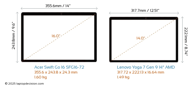 ThunderboltBoth Swift Go 16 SFG16-72 and Yoga 7 Gen 9 14" AMD are equipped with Thunderbolt 4 ports.