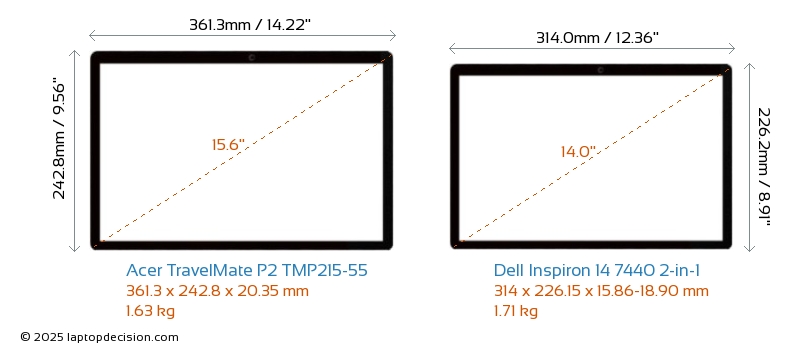 Audio JackBoth TravelMate P2 TMP215-55 and Inspiron 14 7440 2-in-1 are equipped with a 3.5mm Audio Jack, providing seamless connection to headphones and speakers.