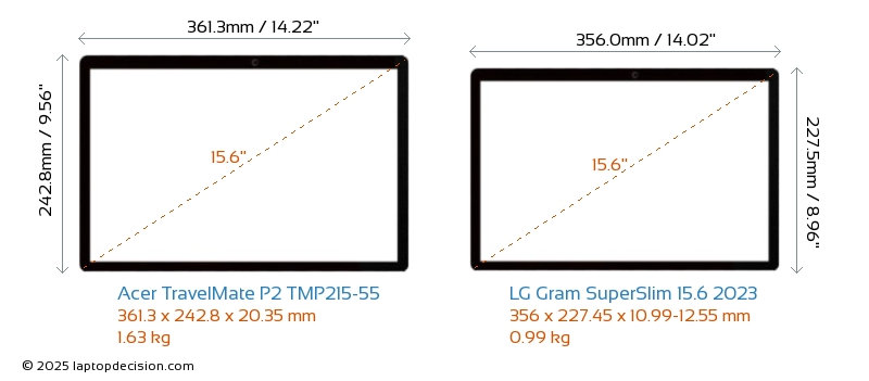 Thunderbolt Gram SuperSlim 15.6 2023 is equipped with Thunderbolt 4 port. TravelMate P2 TMP215-55 does not have Thunderbolt port.