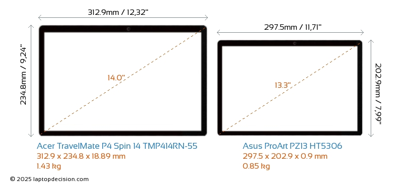Thunderbolt TravelMate P4 Spin 14 TMP414RN-55 is equipped with Thunderbolt 4 port. ProArt PZ13 HT5306 does not have Thunderbolt port.