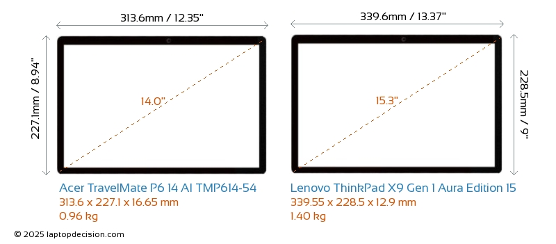 HDMIBoth TravelMate P6 14 AI TMP614-54 and ThinkPad X9 Gen 1 Aura Edition 15 feature an HDMI port (1x HDMI 2.1) for connecting to external monitors.