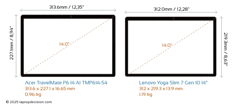 HDMIBoth TravelMate P6 14 AI TMP614-54 and Yoga Slim 7 Gen 10 14" feature an HDMI port (1x HDMI 2.1) for connecting to external monitors.