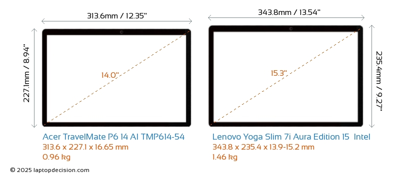 HDMIBoth TravelMate P6 14 AI TMP614-54 and Yoga Slim 7i Aura Edition 15 Intel feature an HDMI port (1x HDMI 2.1) for connecting to external monitors.