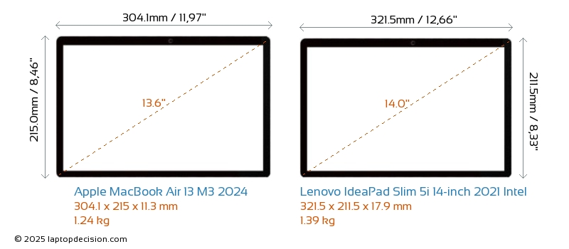 Audio JackBoth MacBook Air 13 M3 2024 and IdeaPad Slim 5i 14-inch 2021 Intel are equipped with a 3.5mm Audio Jack, providing seamless connection to headphones and speakers.