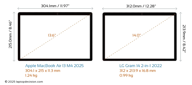 Audio JackBoth MacBook Air 13 M4 2025 and Gram 14 2-in-1 2022 are equipped with a 3.5mm Audio Jack, providing seamless connection to headphones and speakers.