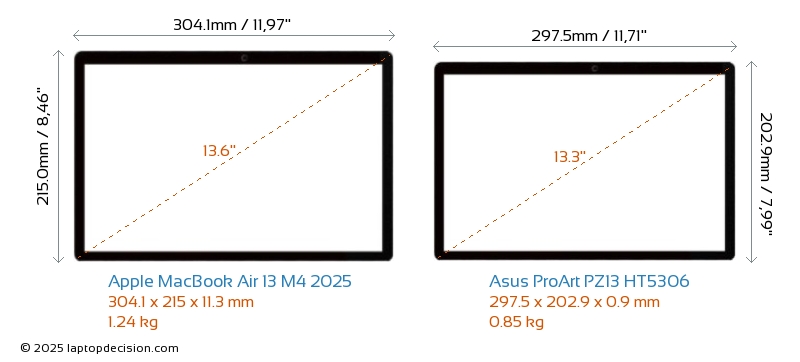 HDMINeither MacBook Air 13 M4 2025 nor ProArt PZ13 HT5306 has an HDMI port for connecting to external monitors. Neither MacBook Air 13 M4 2025 nor ProArt PZ13 HT5306 has an HDMI port for connecting to external monitors.