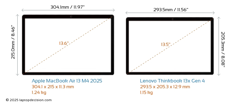 USB Neither MacBook Air 13 M4 2025 nor Thinkbook 13x Gen 4 has USB-A ports.Both MacBook Air 13 M4 2025 and Thinkbook 13x Gen 4 feature 2x USB 4.0 USB Type-C ports.
