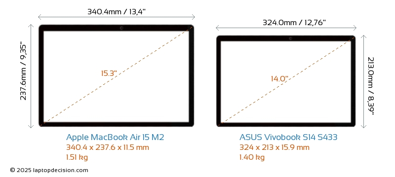 Audio JackBoth MacBook Air 15 M2 and Vivobook S14 S433 are equipped with a 3.5mm Audio Jack, providing seamless connection to headphones and speakers.